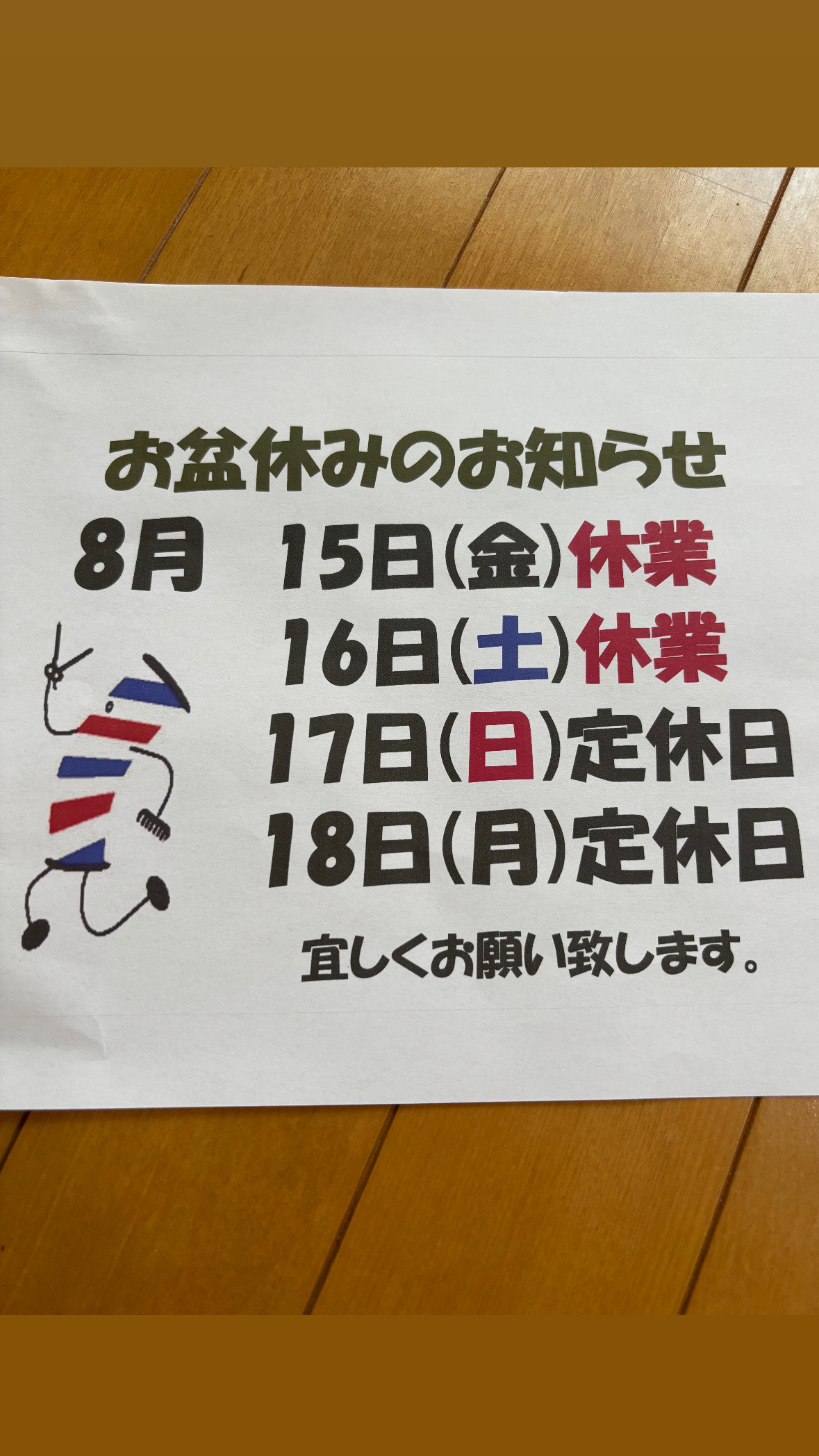 15〜18日までお盆やすみです