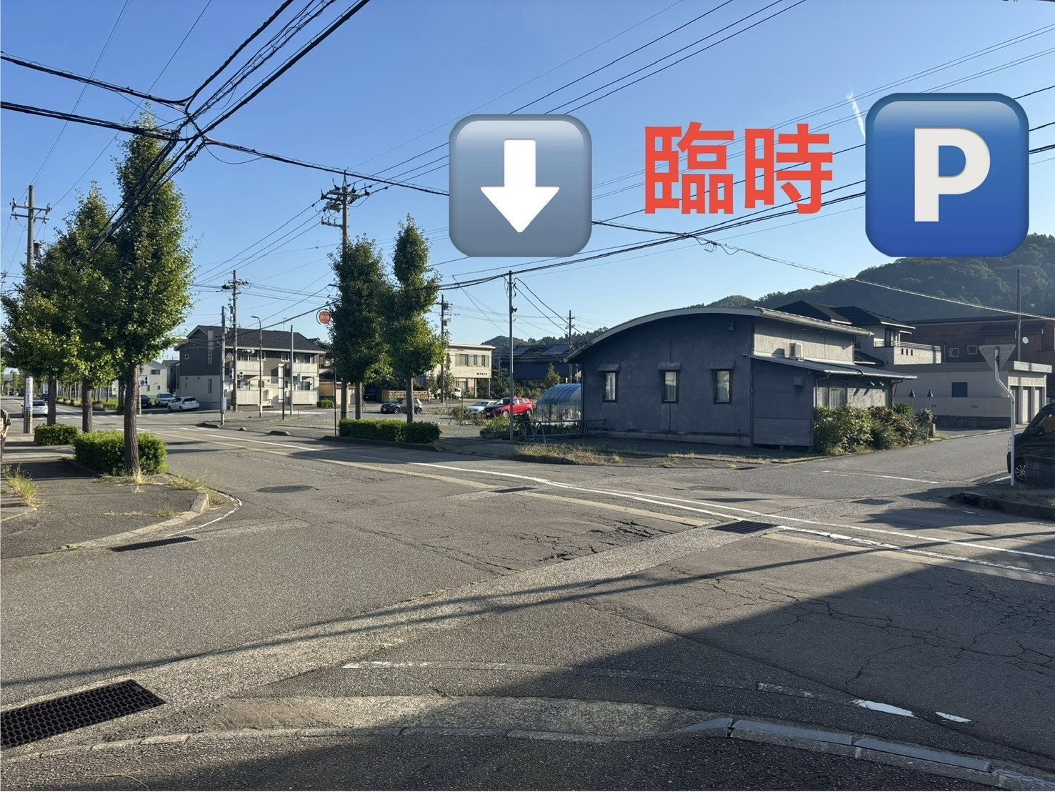 お向かい側のグレーの建物の横の砂利に3台分ほどお車停めれるようにしてあるので分からなければまた聞いてください!
